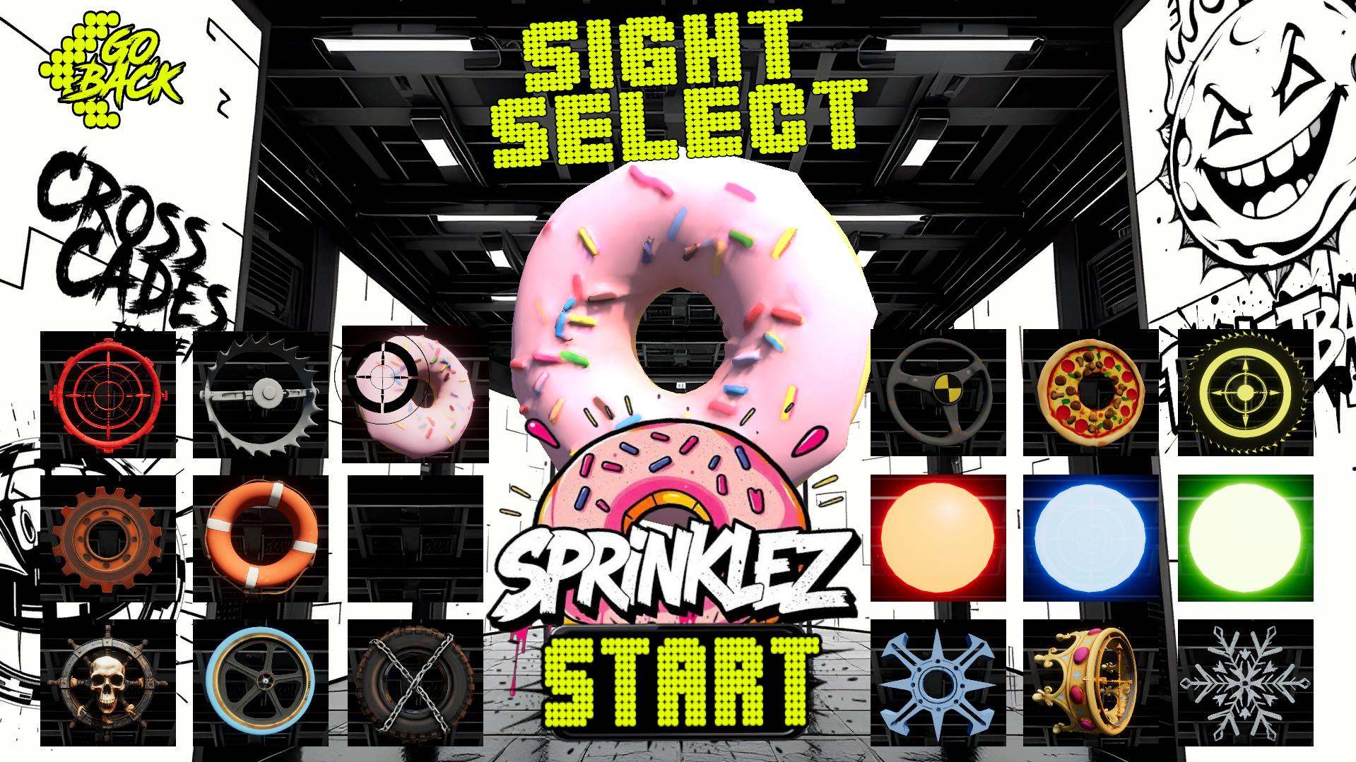 Shoot it out in 9 arenas with 18 balls and 18 sight reticles.